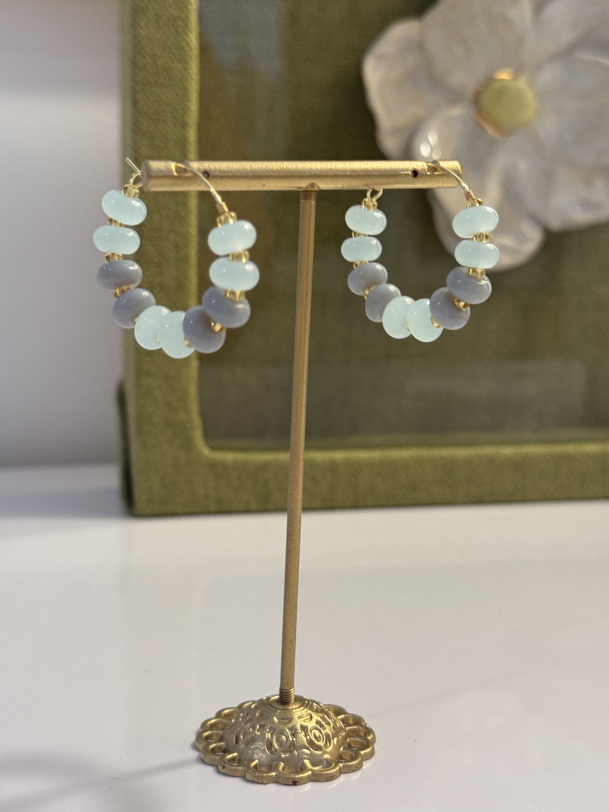 Blue/Gray/Green Tones - Beaded Earrings
